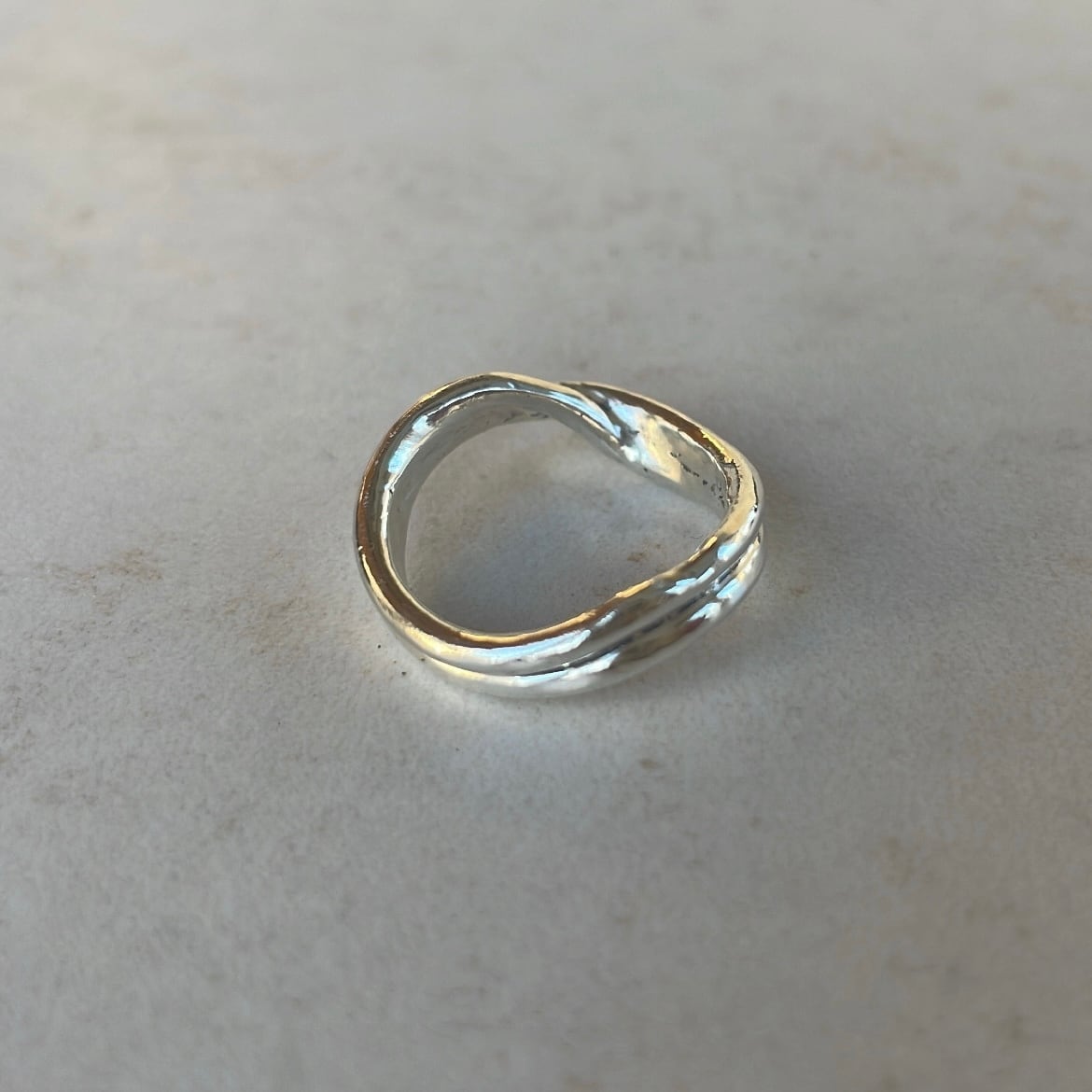 捻れた二重のシルバーが繊細でおしゃれな印象を与えます